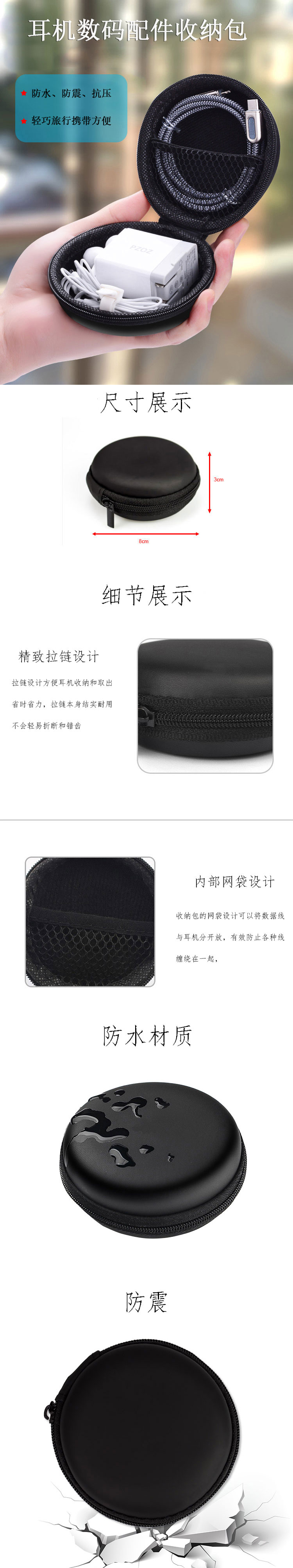 廠家直銷 eva戶外防刮耐磨便攜式有線耳機(jī)收納包 中性數(shù)碼收納包